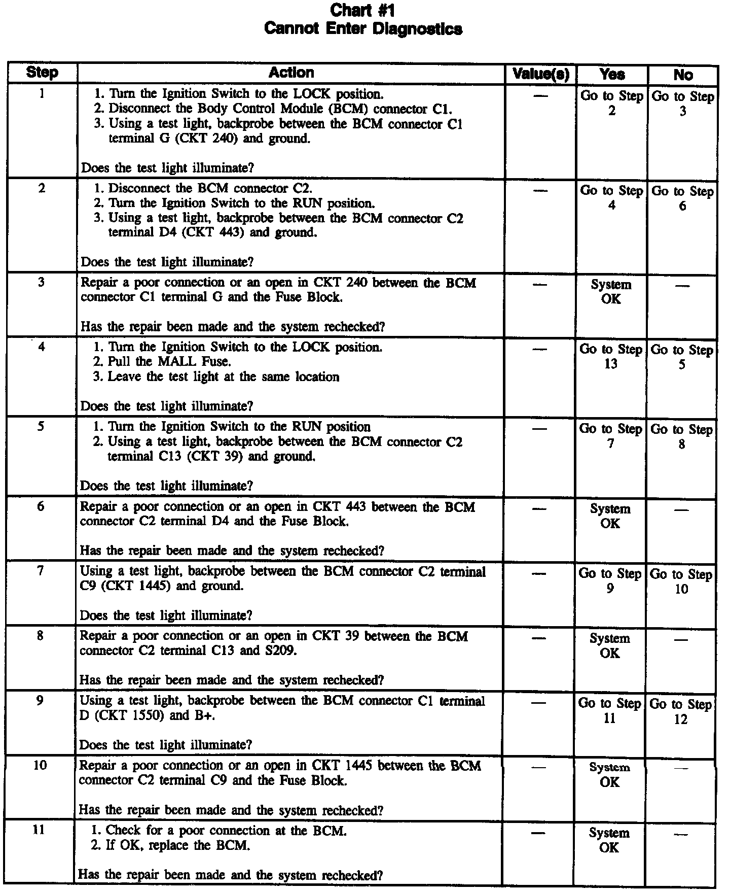 Chart #1 Cannot Enter Diagnostics (Part 1 Of 2):
