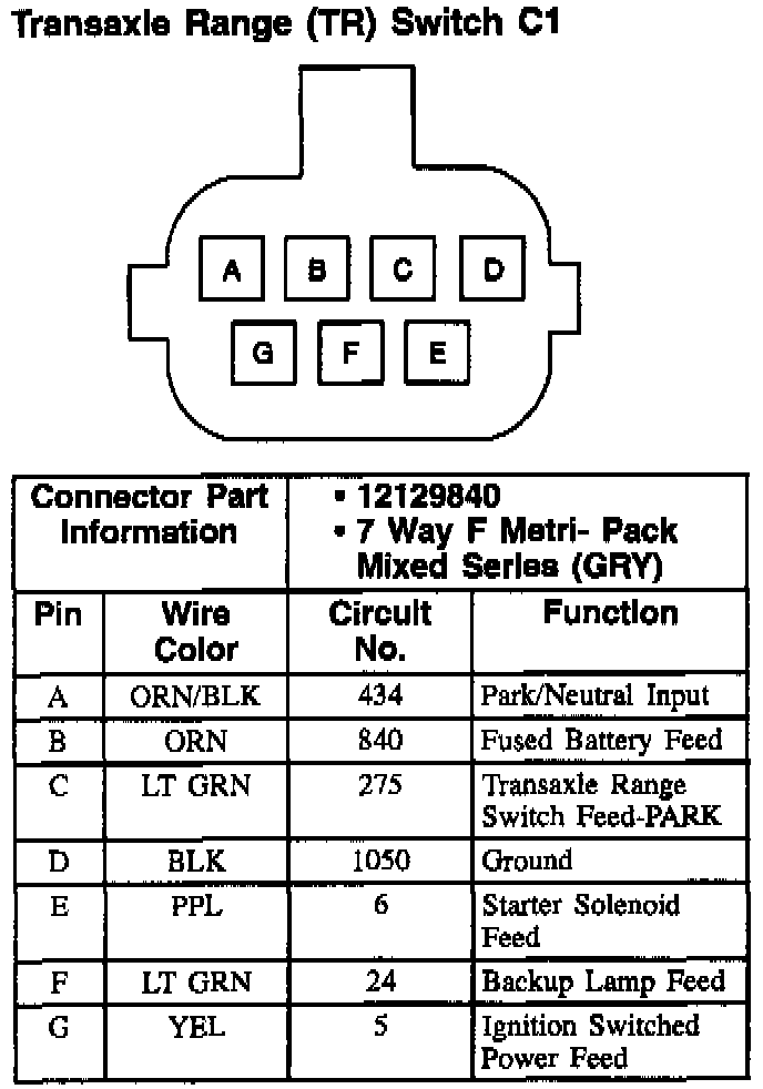 Transaxle Range (TR) Switch: C1:
