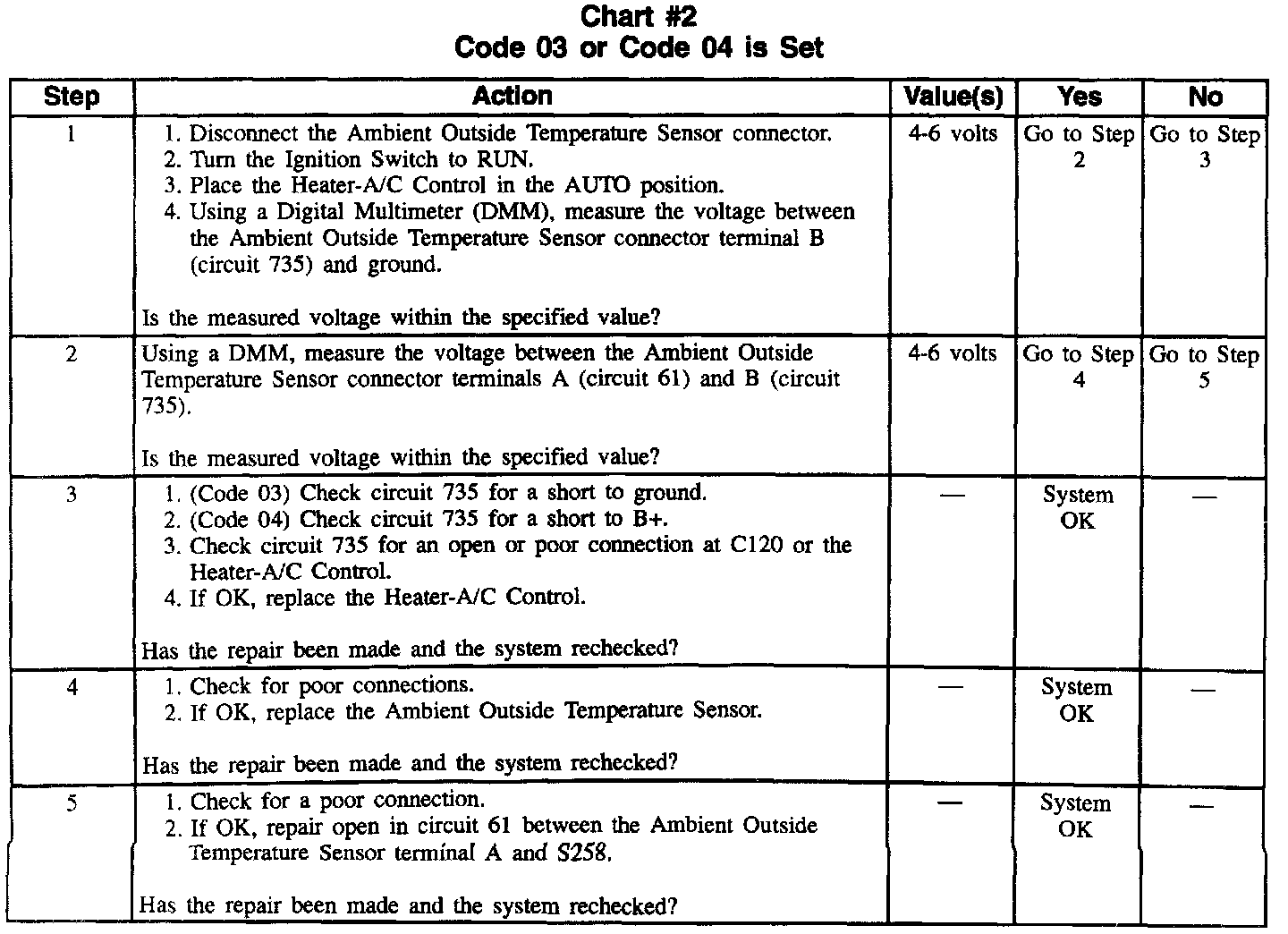 Chart #2 Code 03 Or Code 04 Is Set: