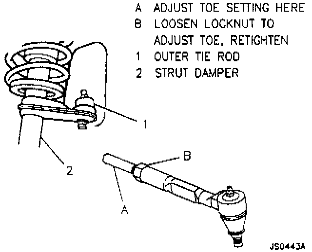 Adjust toe to specification by turning adjuster.