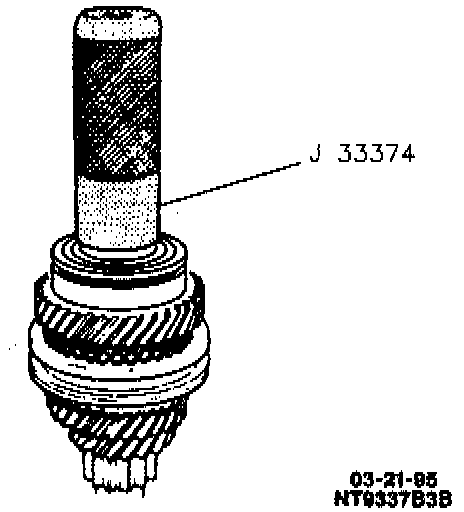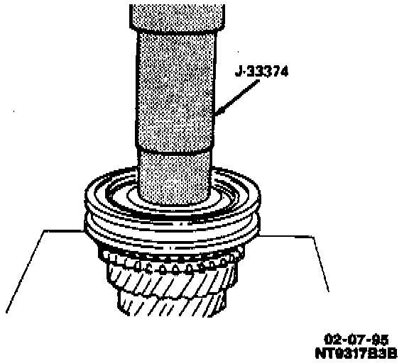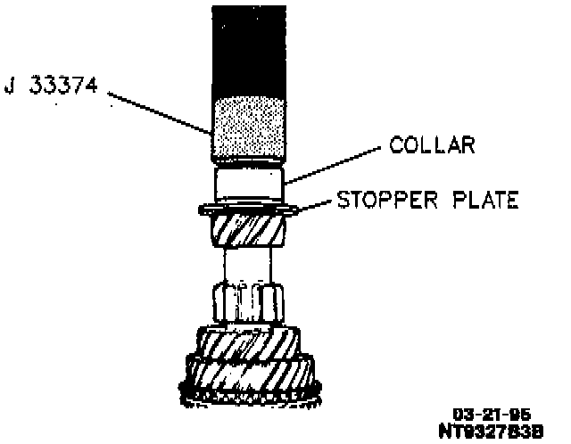 4. Collar and stopper plate using J 33374 and a press. Before installing, apply oil to the bearing interior and race surfaces.
