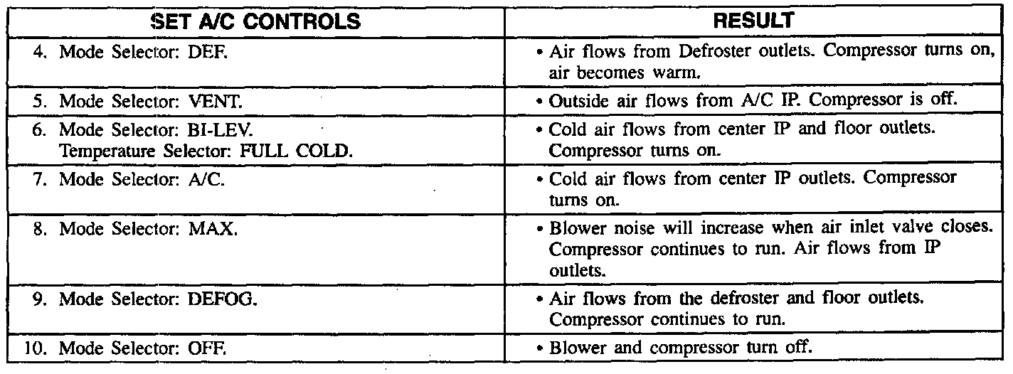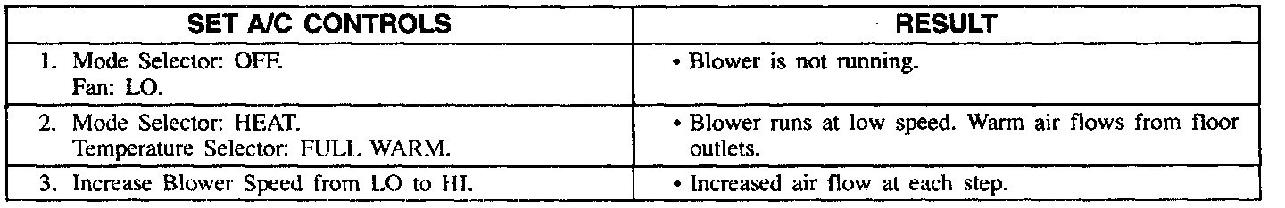 The following procedures check the Manual Air Conditioning System. All the steps in each procedure can be completed without using tools. Detailed diagnostic procedures follow the system check and are referenced in each step.