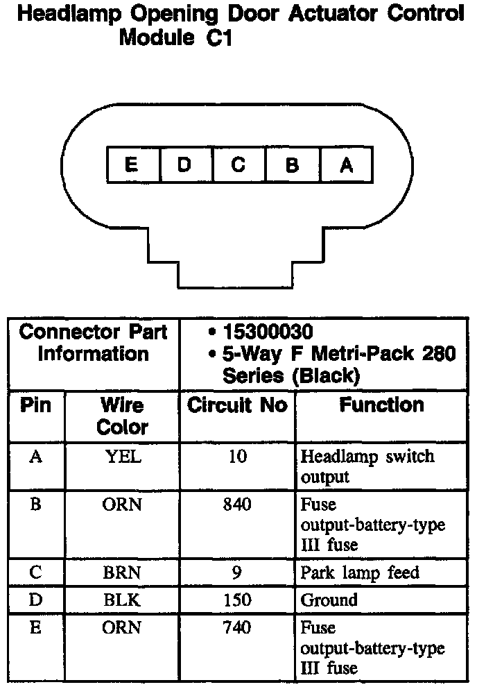 Headlmap Opening Door Actuator Control Module C1: