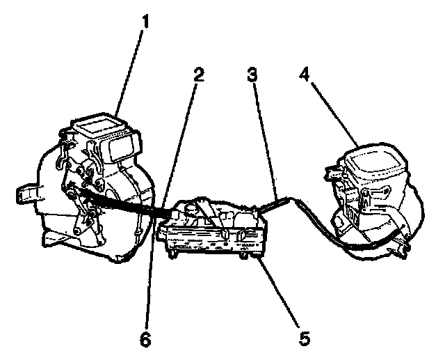 1. Disconnect the fresh/recirc control cable (3) at the blower case (4).