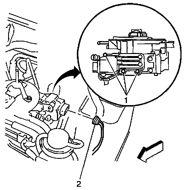 4. Remove the three screws (1) and the ISC motor from the throttle body fuel injection (TBI) unit.