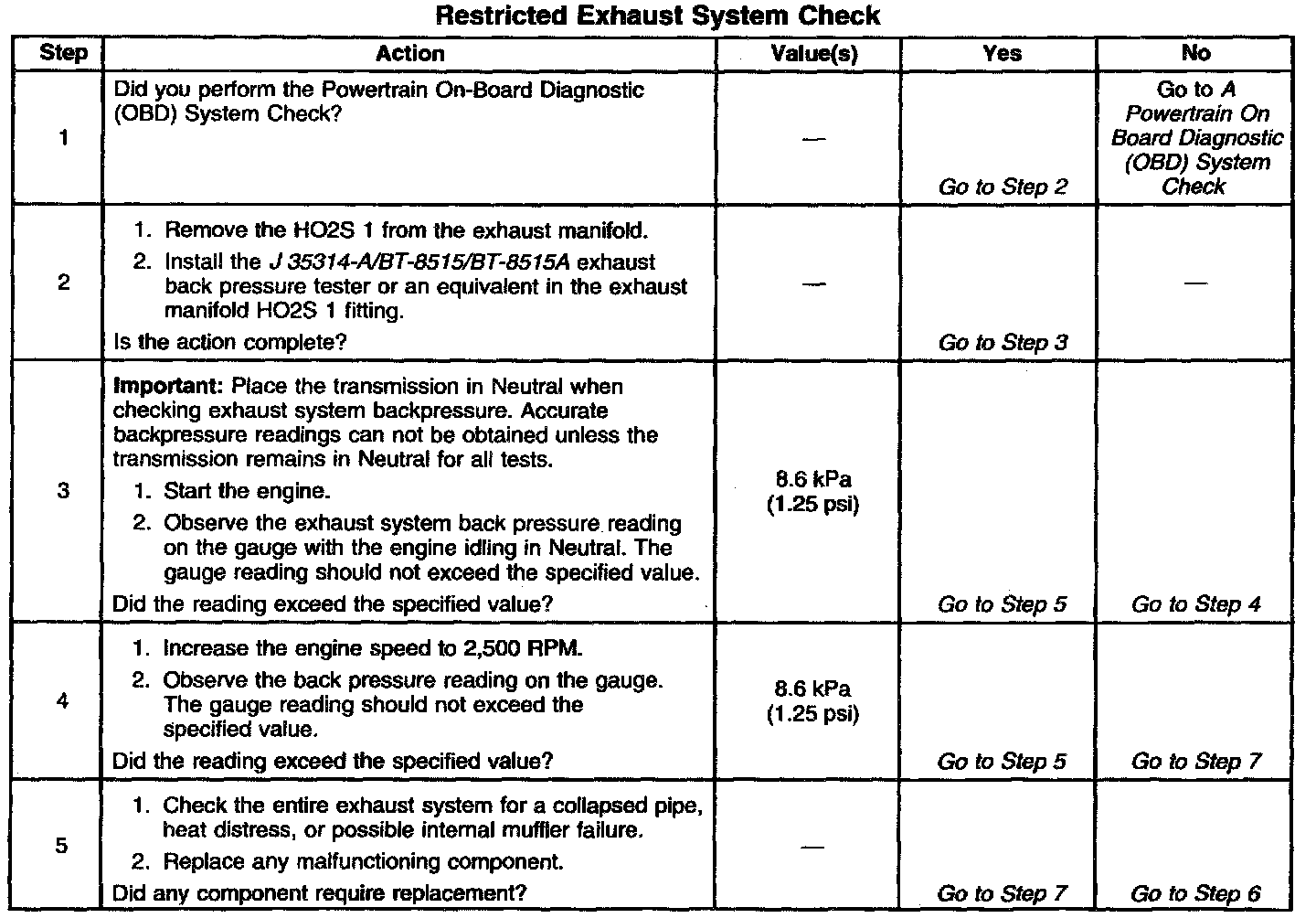 System Check - Restricted Exhaust