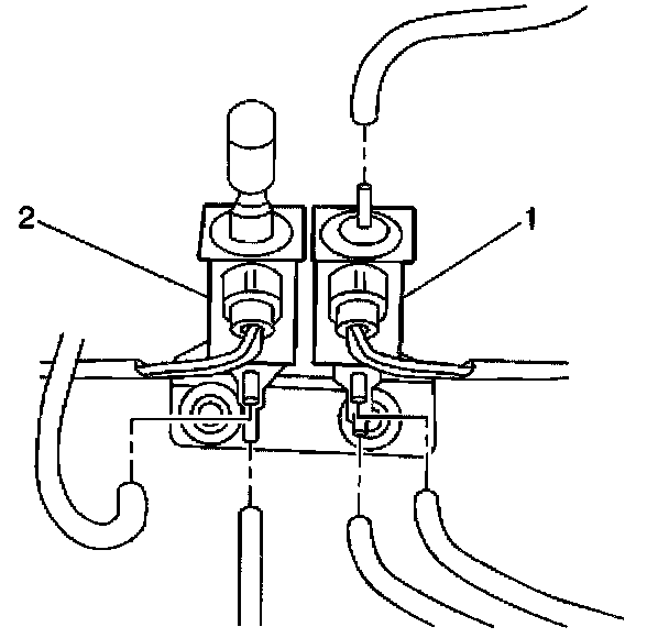 1. Disconnect the two vacuum hoses from the EGR solenoid vacuum valve (2).