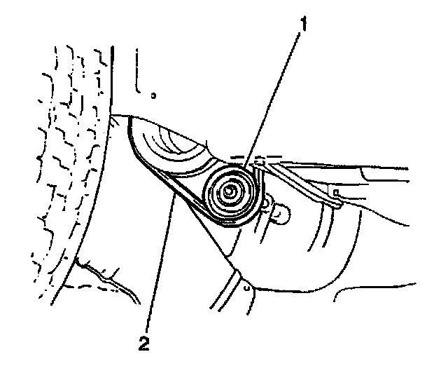 7. Remove the compressor drive belt (2) from the clutch pulley.