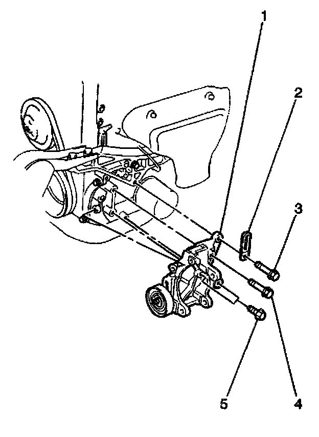 2. Secure the compressor bracket with 4 bolts (3,4,5). Tighten the bolts in the following sequence: