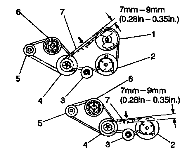 8. Ensure that the belt is properly aligned on the compressor, power steering (if equipped) and crankshaft pulleys.