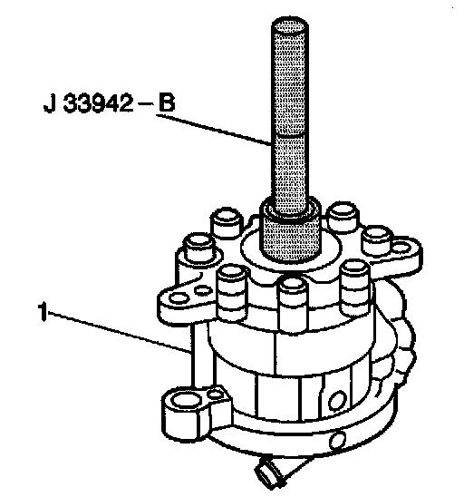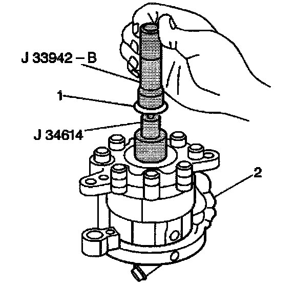 6. Turn the J 33942-B until the tool makes contact with the seal notches.