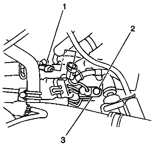 2. Remove the one bolt (2) and the VSS (3) from the top of the transaxle.