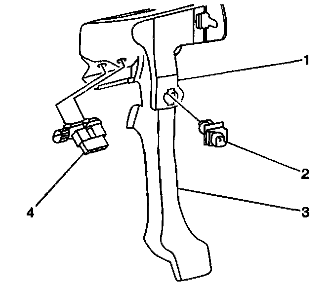 3. Pull the clutch pedal switch (1) rearward in order to remove the switch from the retainer in the bracket.