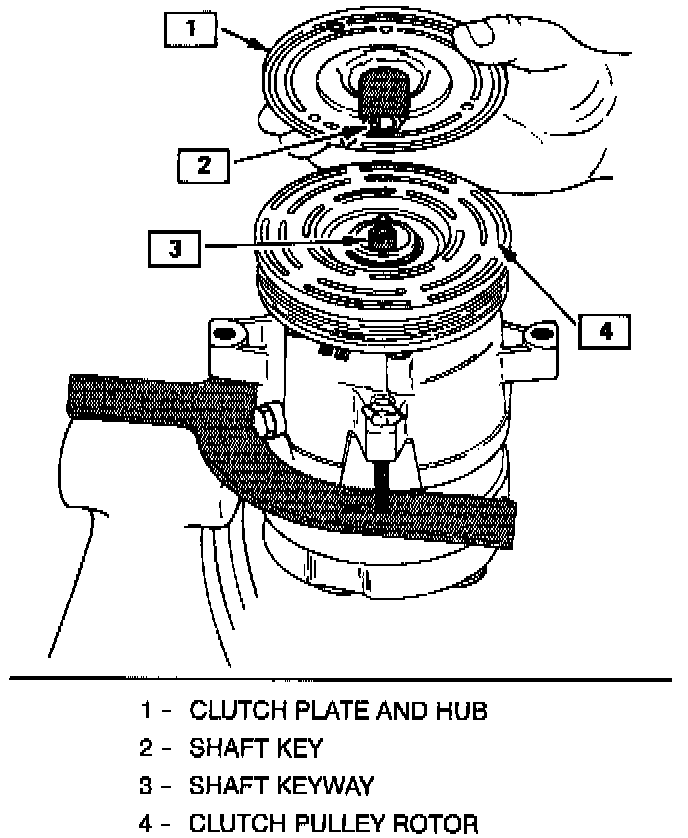 3. Align the shaft key with the shaft keyway and place the clutch plate and the hub assembly onto the compressor shaft.