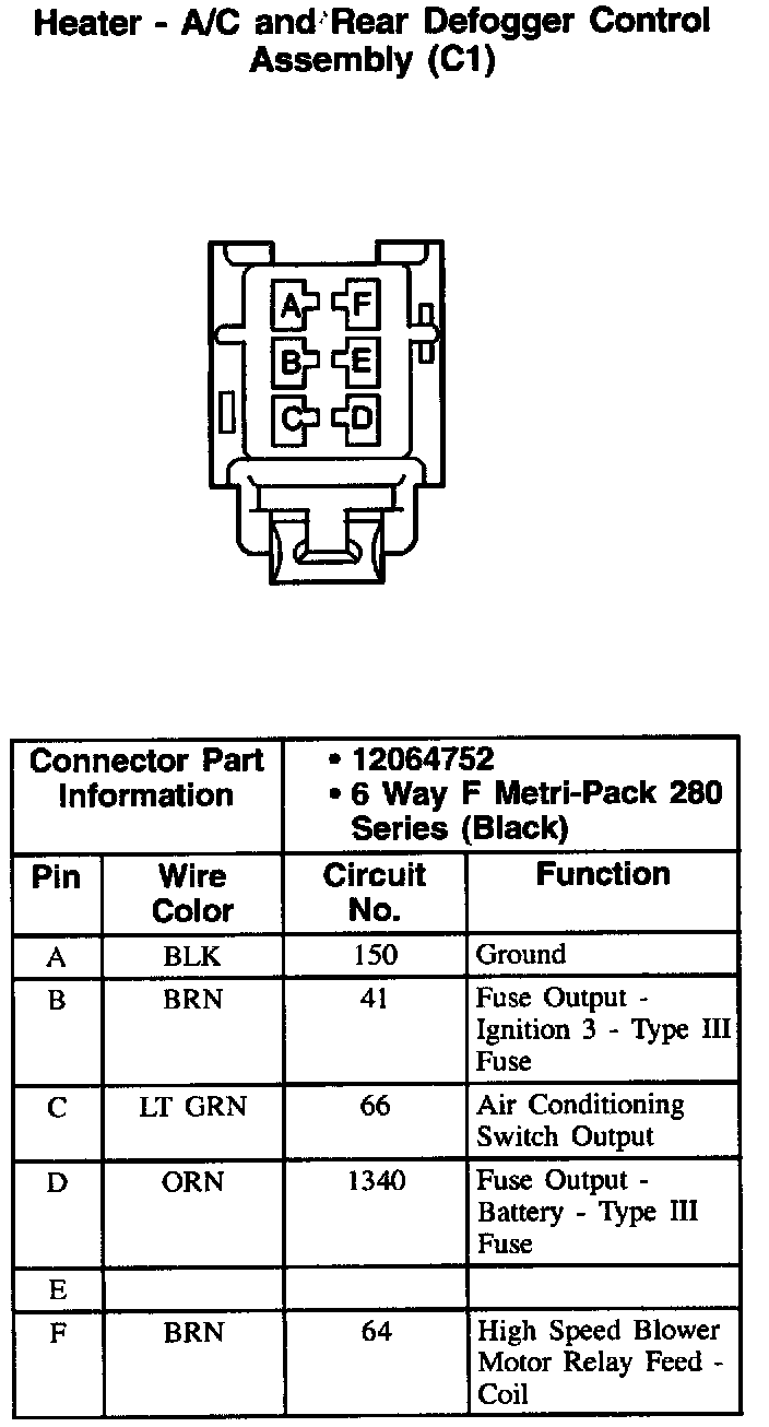Heater - A/C And Rear Defogger Control Assembly (C1):