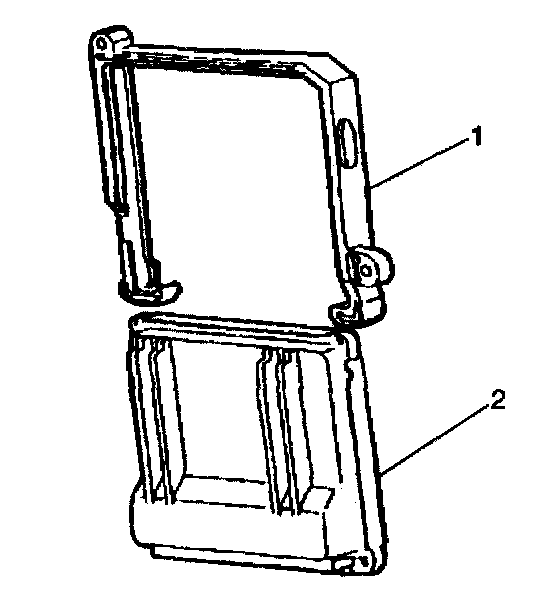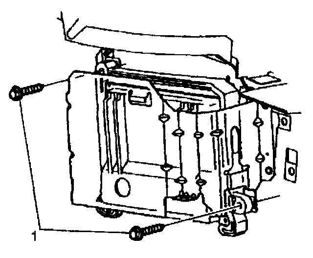 7. Slide the PCM and the retainer (1) from the PCM bracket (2).