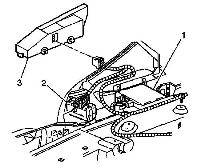 3. Disconnect the electrical connector (2) of the remote control door lock receiver (1).