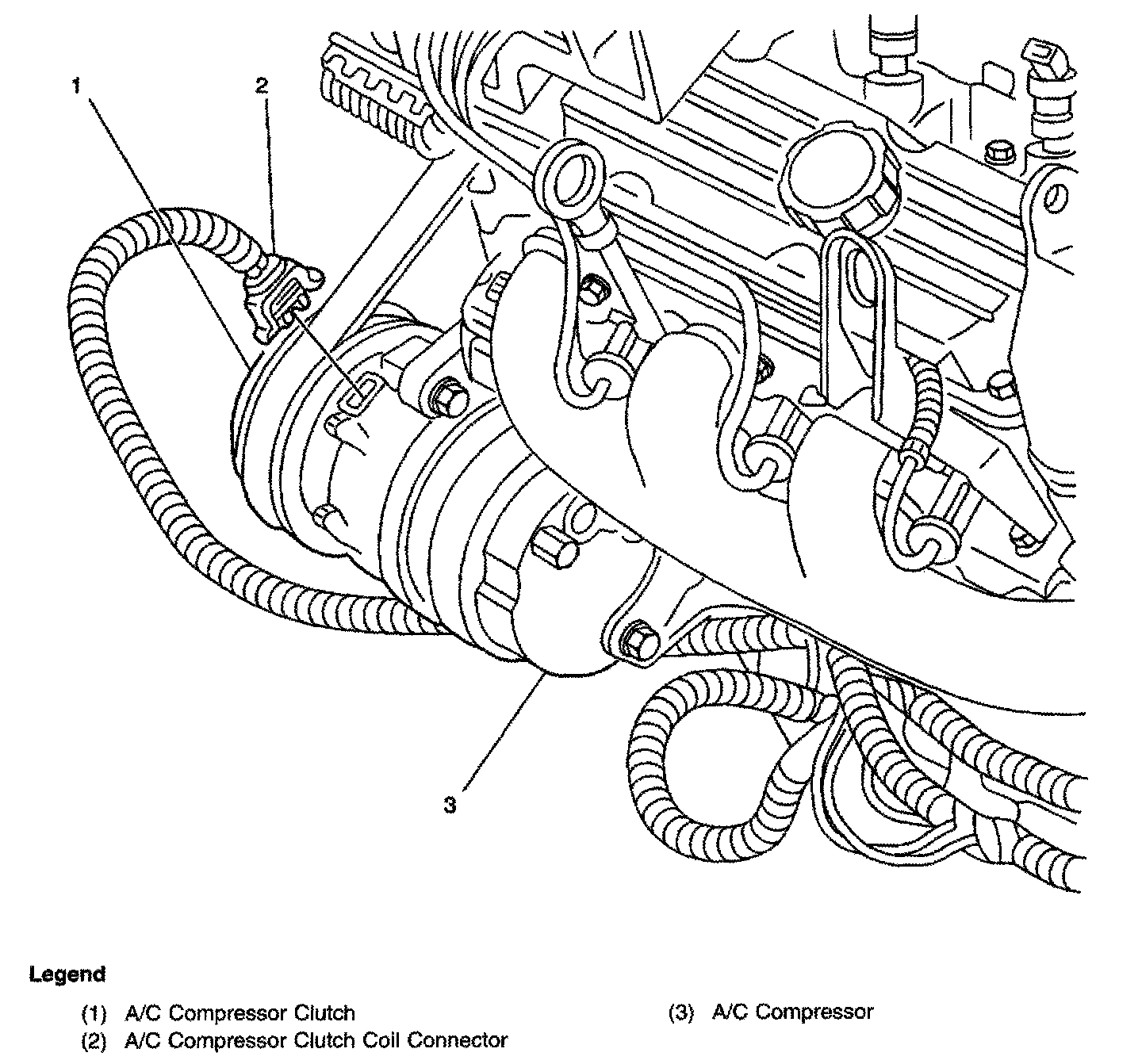 A/C Compressor - Lower Right Front Of Engine: VIN K, 1: