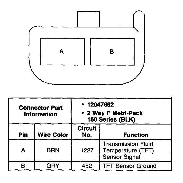 TRANSMISSION FLUID TEMPERATURE (TFT) SENSOR CONNECTOR, WIRING HARNESS SIDE