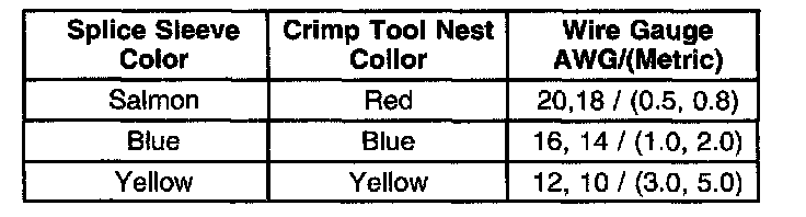 5. Select the proper splice sleeve (2) and the required crimp nest tool, refer to the Crimp and Seal Splice Table.