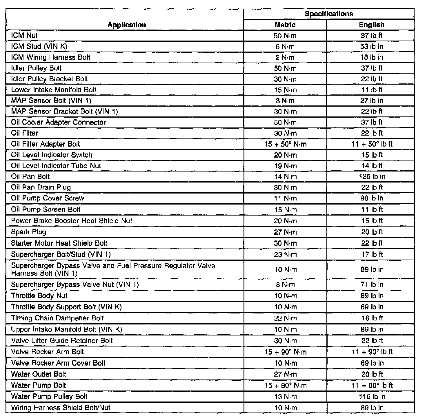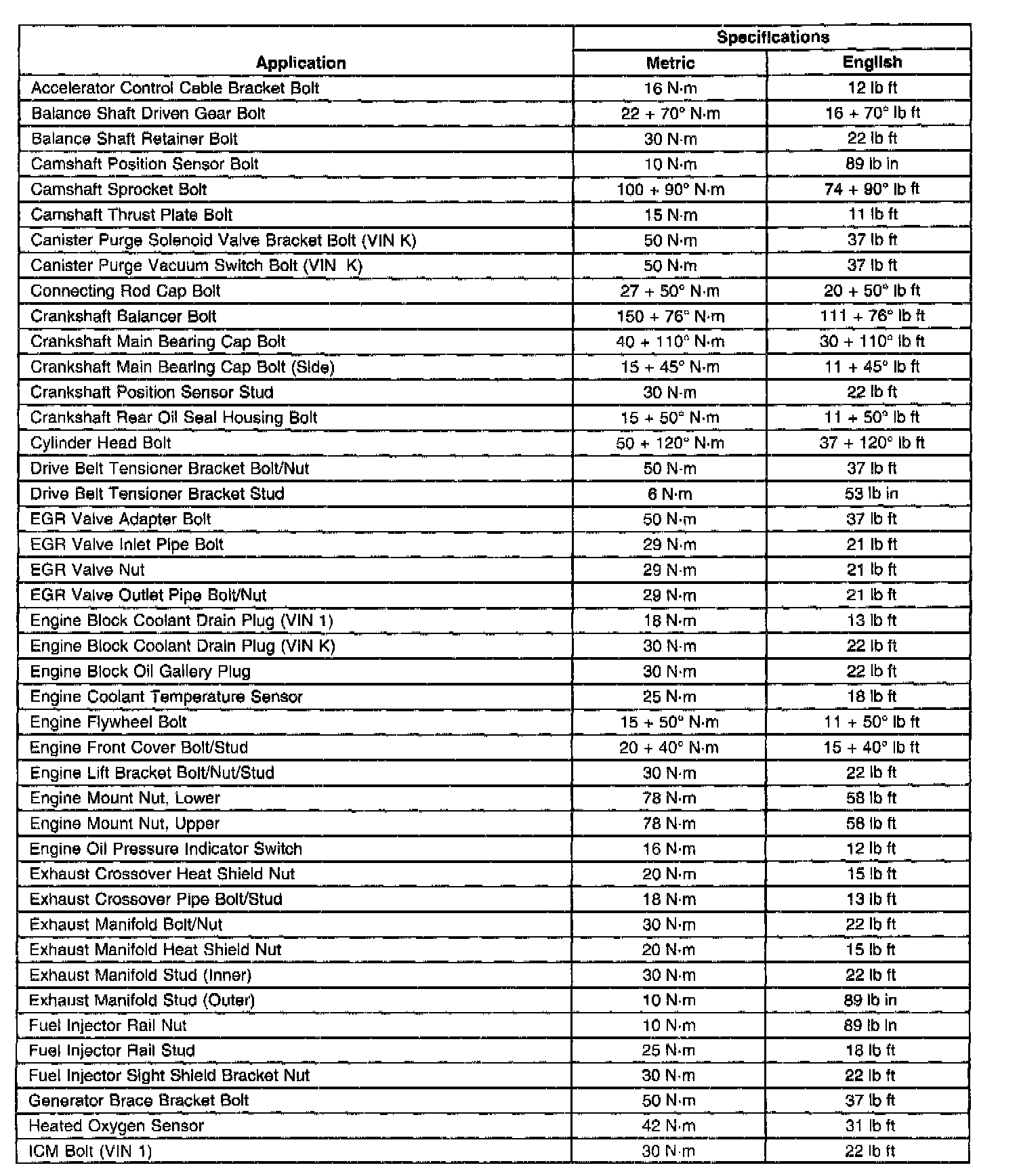Engine Fastener Torque