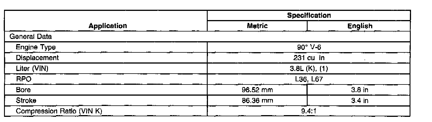 General Engine Data Specifications