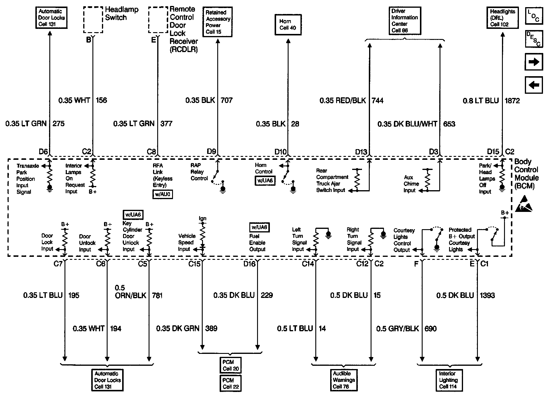 Body Control Module Schematics: Headlamp Switch, RCDLR, RAP Relay, Horn Relay: