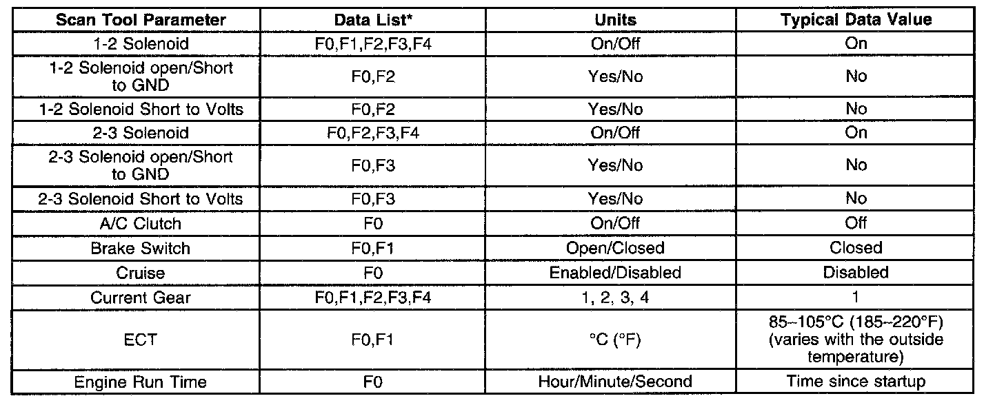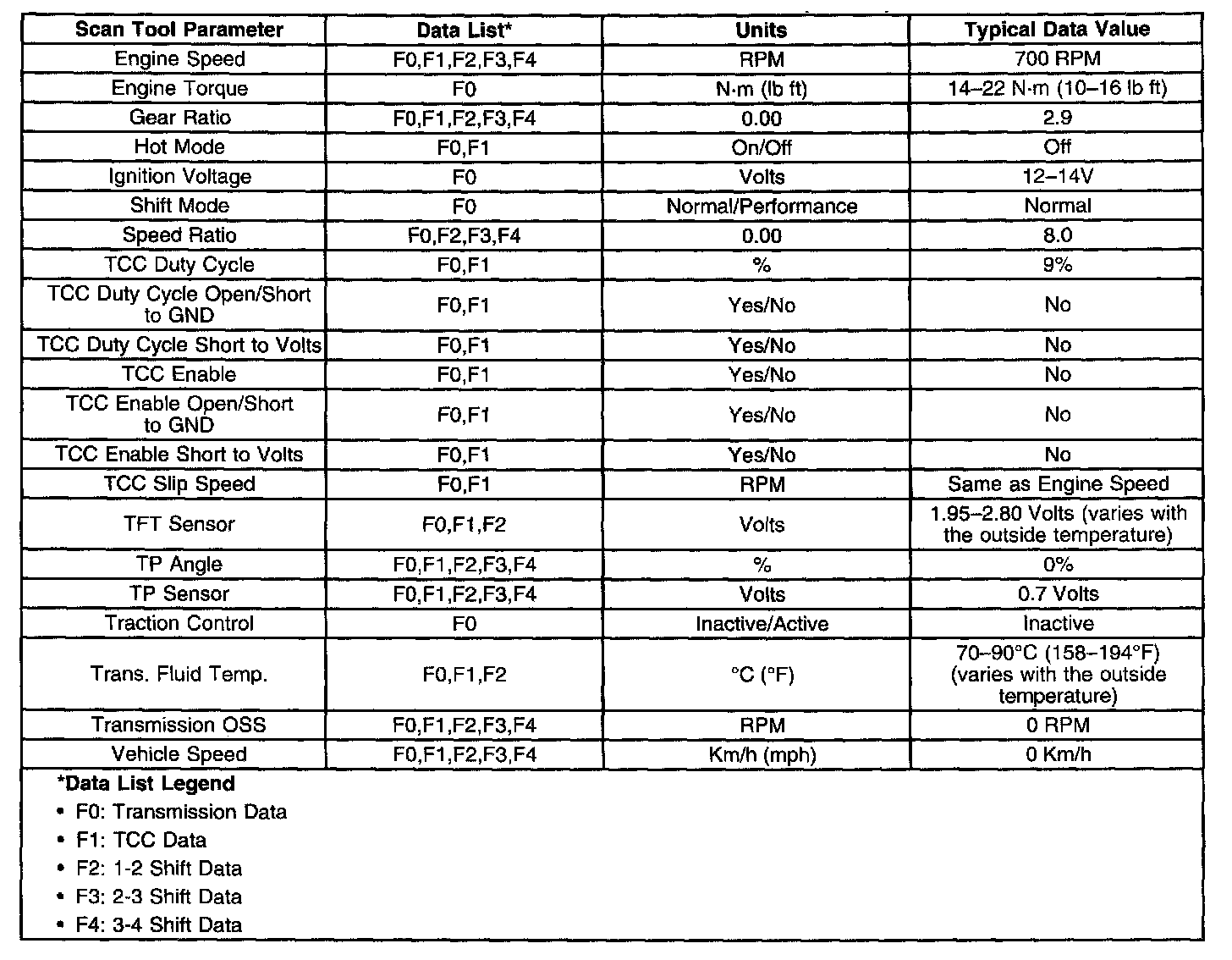 TRANSMISSION SCAN TOOL DATA VALUES