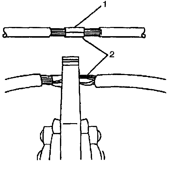 ^ Ensure that each splice is at least 40 mm (1.5 in) away from other splices, harness branches and connectors. This helps prevent moisture from bridging adjacent splices and causing damage.