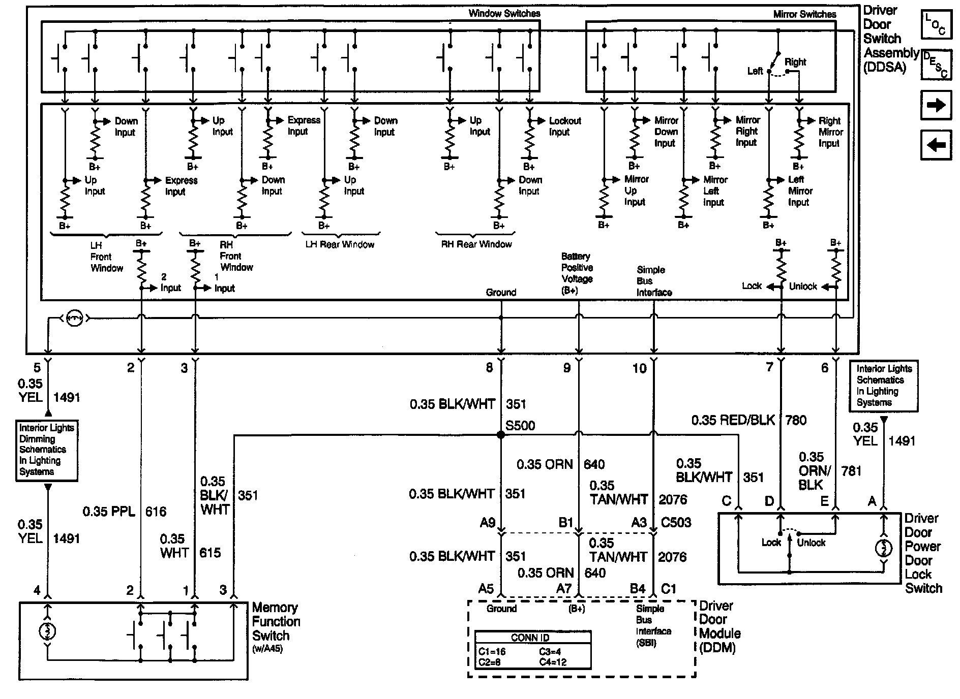 Door Control Module Schematics: Driver Door Switch Assembly: