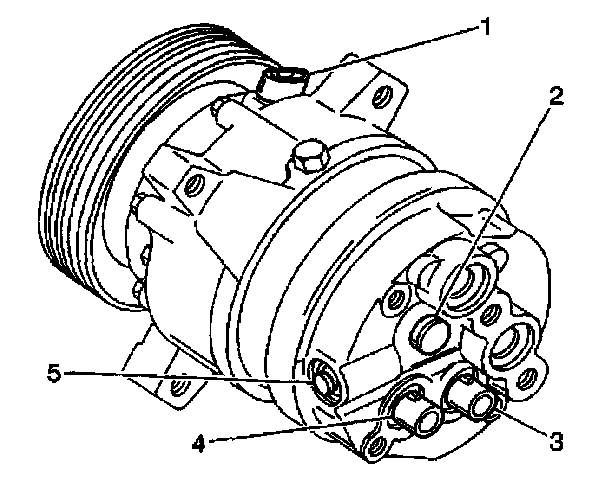 6. Perform a leak test. Refer to Compressor Leak Testing (V5 - Conventional Mount). Compressor Leak Testing (V5 - Conventional Mount)