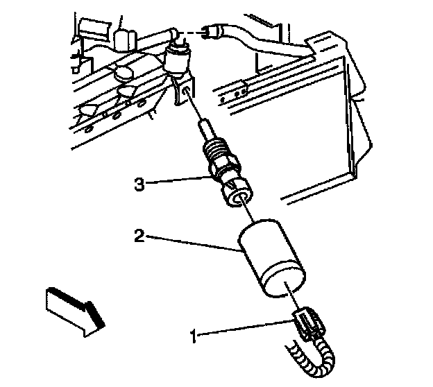 3. Disconnect the electrical connector (1) from the ECT sensor (3).