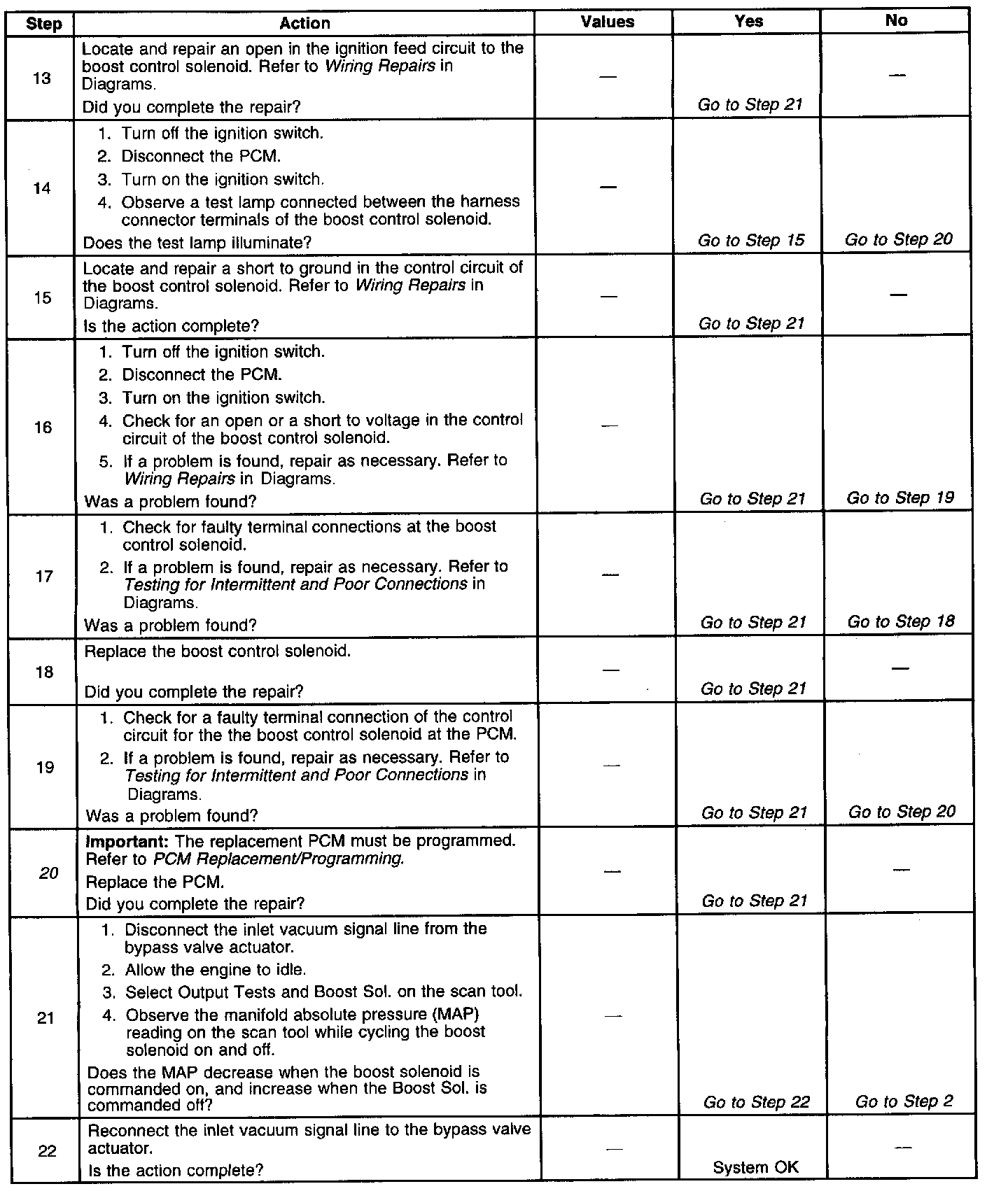 4. Ensures that the PCM can control the ODM output for the boost control solenoid, and that the control circuit of the boost control solenoid is not open.