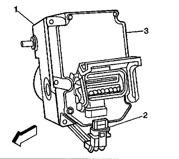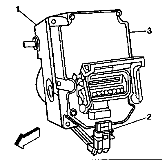 8. Remove the BPMV electrical connector (2) from the EBCM(3).