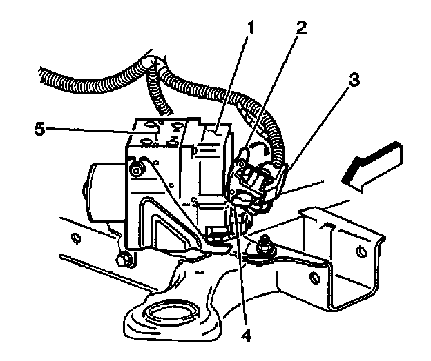 7. Remove the EBCM electrical connector (1) from the EBCM (4).