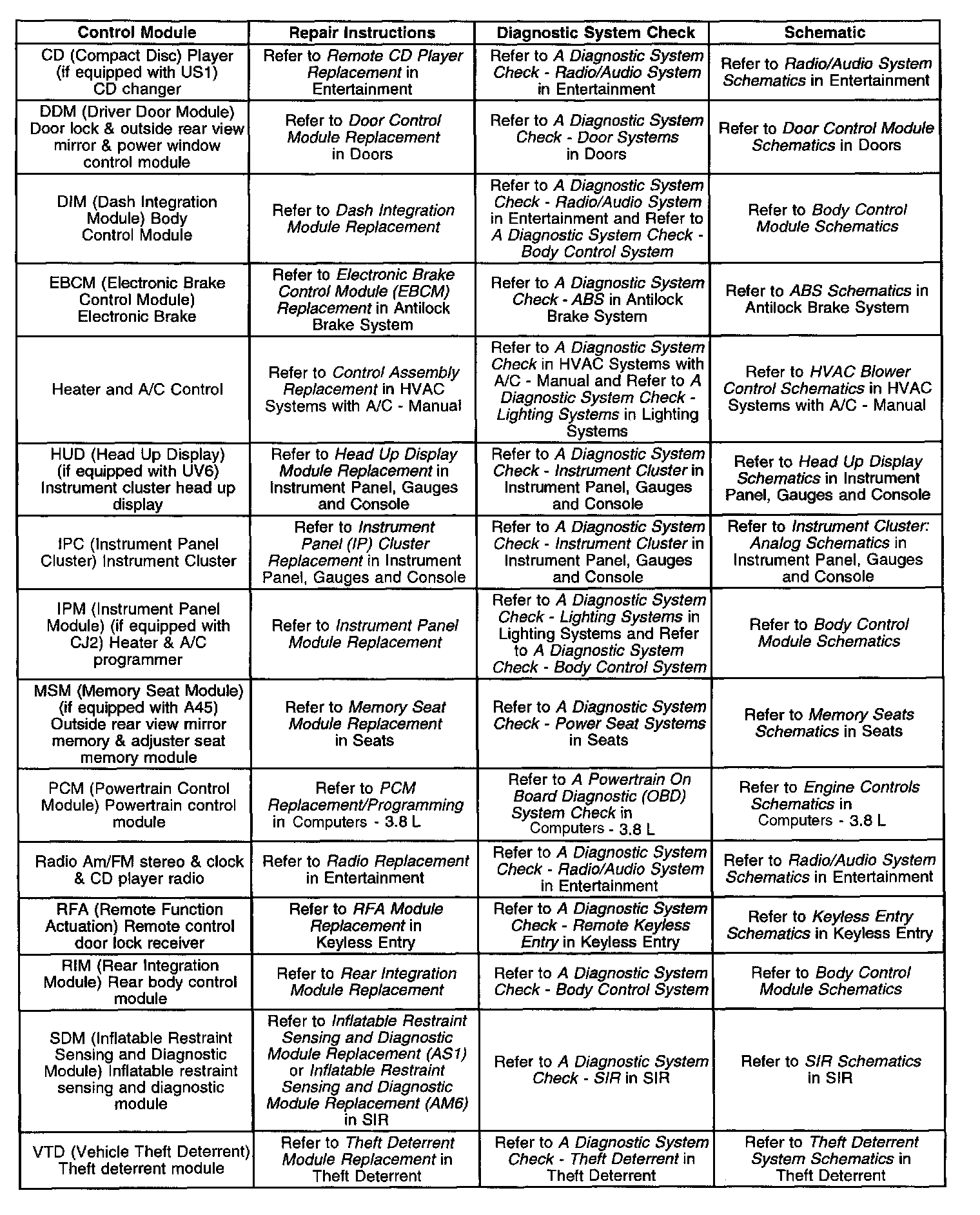 Control Module References