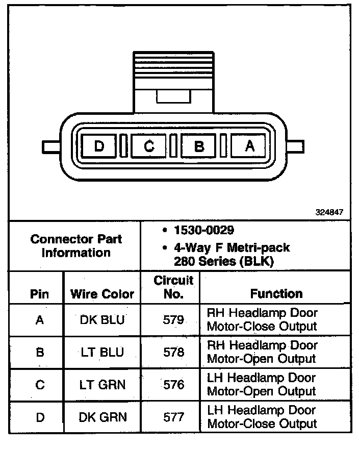 Headlamp Opening Door Actuator Control Module Connector C2