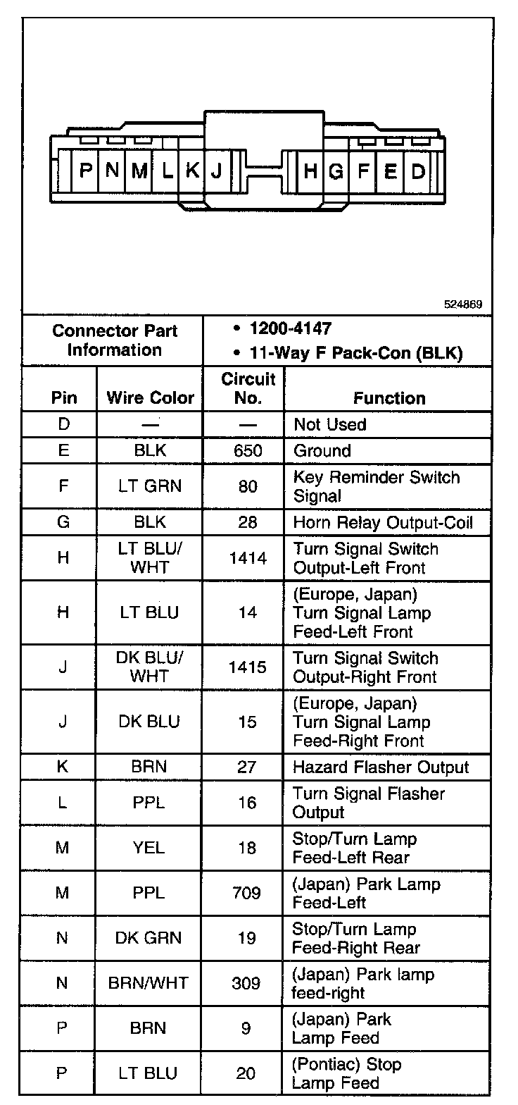C216 Connector For Ignition Key Warning Switch, Turn/Hazard Switch Assembly: