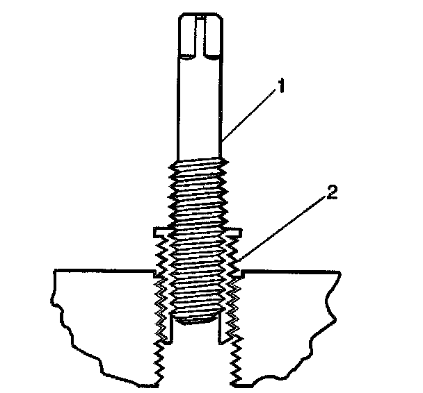 11. Apply threadlock Loctite (R) 277, J 42385-109 (1), or equivalent to the insert OD threads (2).