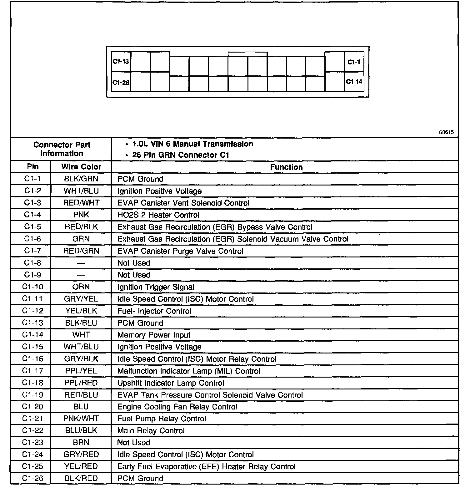 Back View Of The PCM Connector C1: