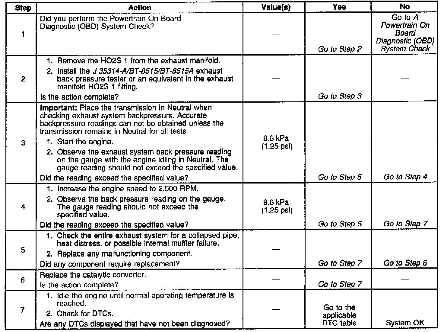 Restricted Exhaust System Check: