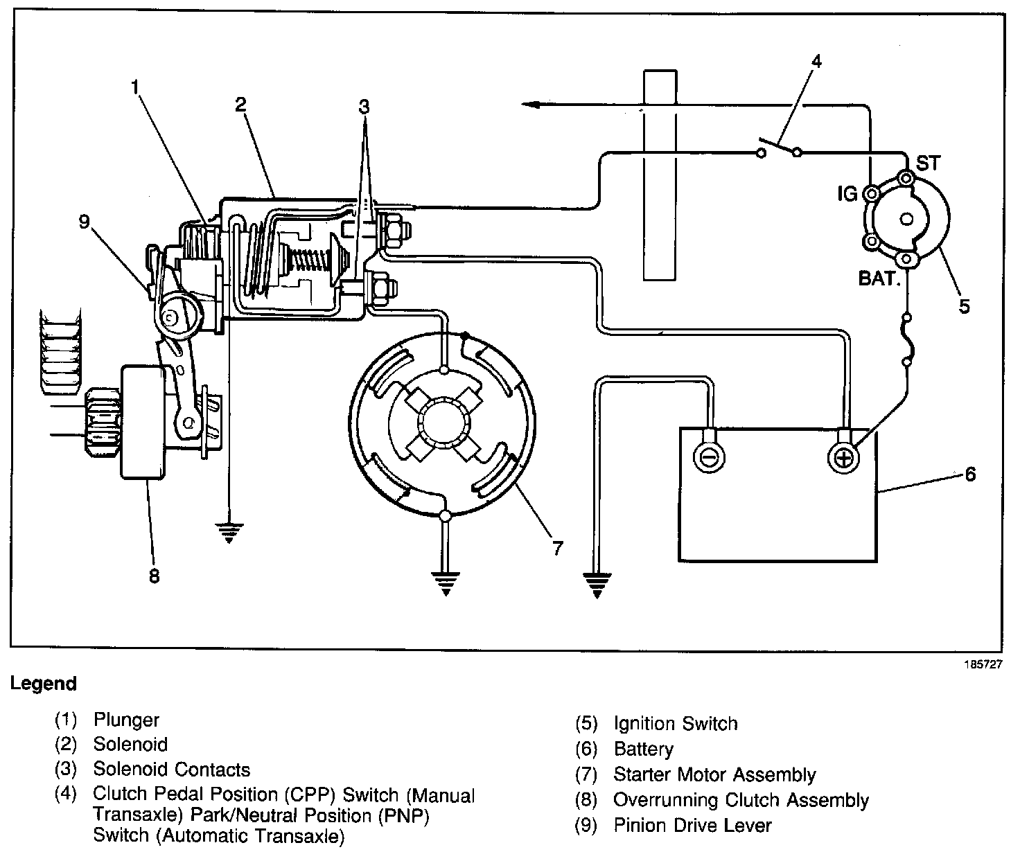 Vehicles equipped with manual transaxle utilize conventional starter motors which consist of a yoke, an armature assembly, an overrunning clutch assembly, a solenoid, a commutator end cover, a brush holder, and pinion drive lever.