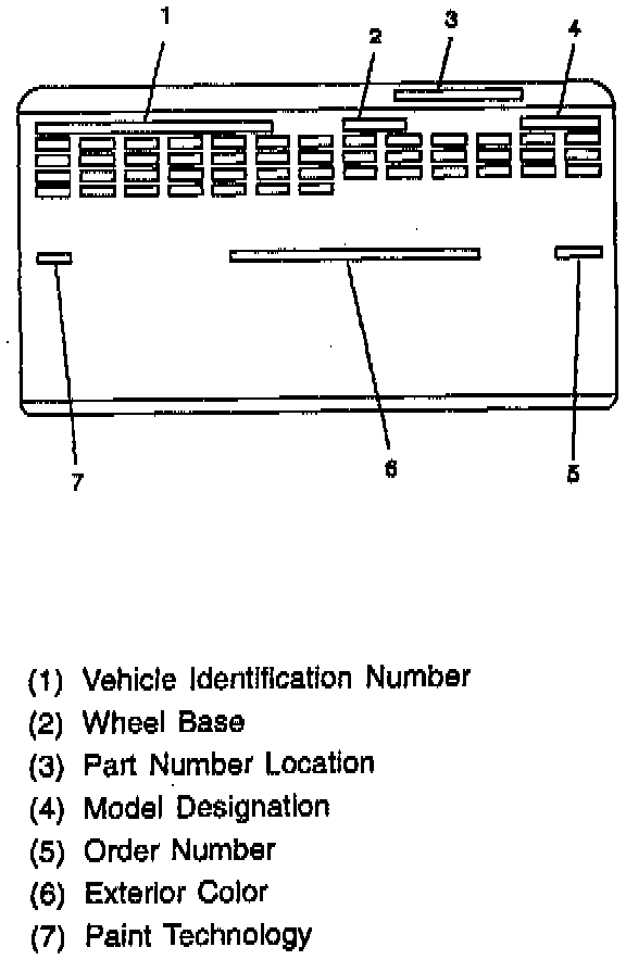 The service parts identification label is placed on the vehicle in order to help service and parts personnel identify the vehicle's original parts and the vehicle's original options. The label is located on the lower left-hand corner of the spare tire cover.