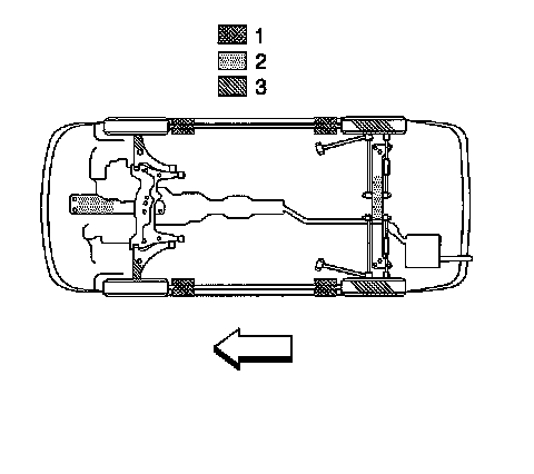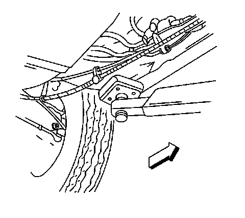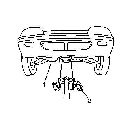 Caution: To avoid any vehicle damage, serious personal injury or death when major components are removed from the vehicle and the vehicle is supported by a hoist, support the vehicle with jack stands at the opposite end from which the components are being removed and strap the vehicle to the hoist.