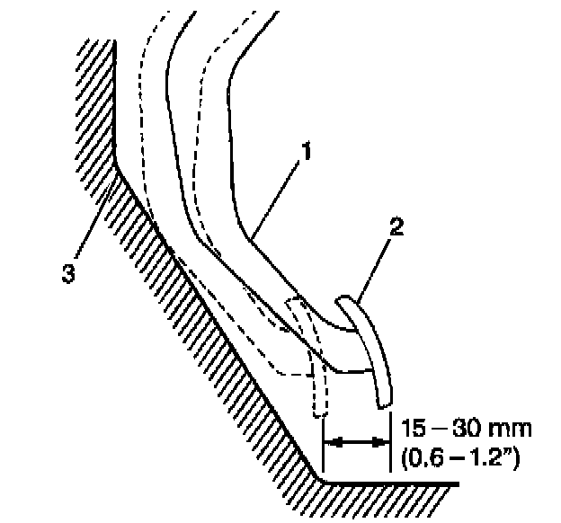 4. Depress the clutch pedal (2) to the floor (3). Return the clutch pedal 15 - 30 mm (0.6 - 1.2 inch) from the floor.