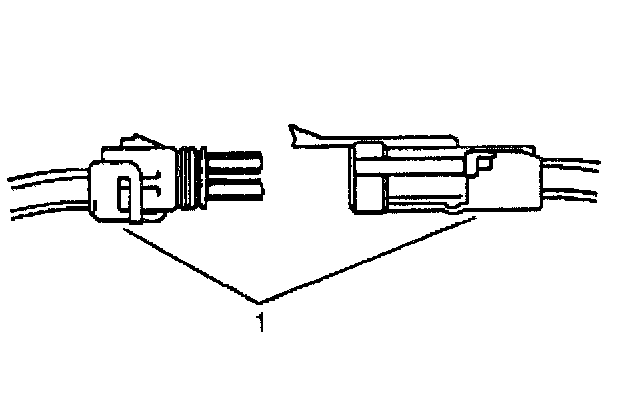 ^ Insert the Weather pack(R) terminal removal tool into the front (mating end) of the connector cavity until it rests on the cavity shoulder (1).
