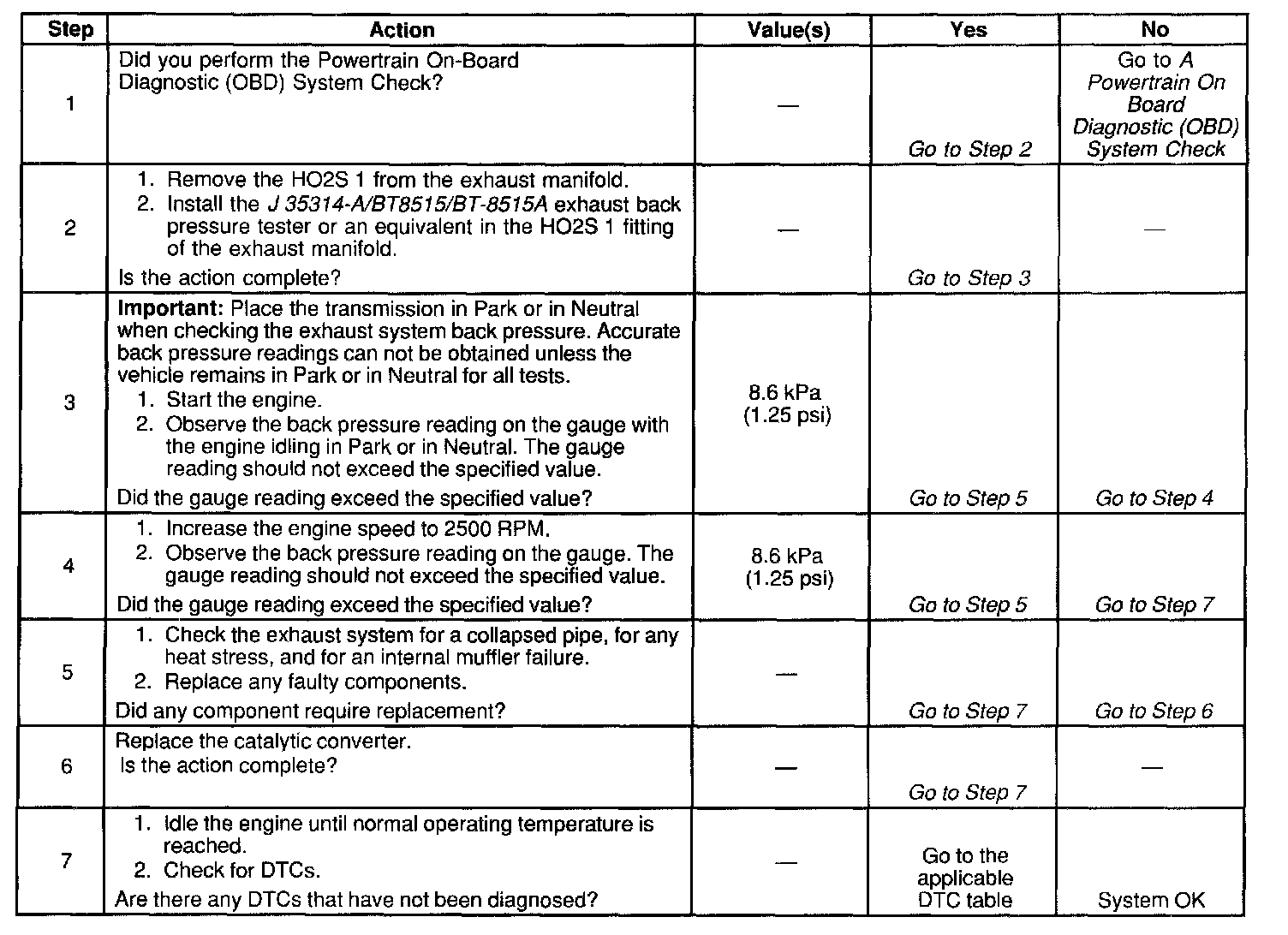 Restricted Exhaust System Check: