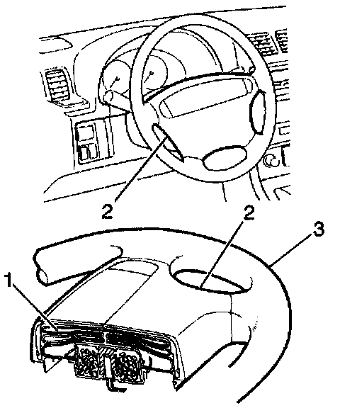 If the vehicle is in a frontal crash of sufficient force, the SDM allows current through the deployment loops. The current that passes through the initiator ignites the material in the inflator module (2). The gas from this reaction quickly inflates the air bag (1).