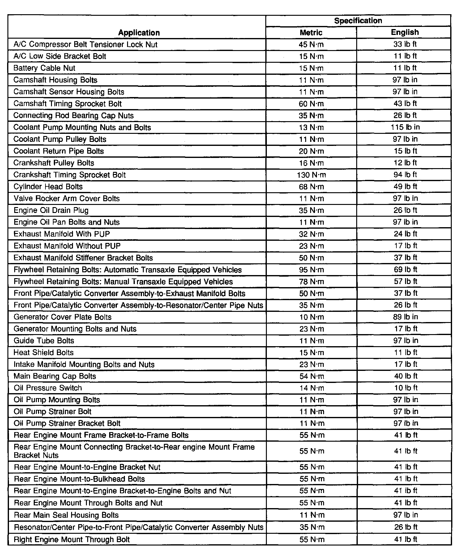 Fastener Tightening Specifications