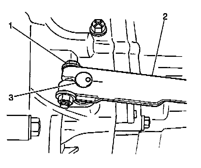 24. Remove the 1 nut and the 2 washers at the extension rod mounting stud (3).